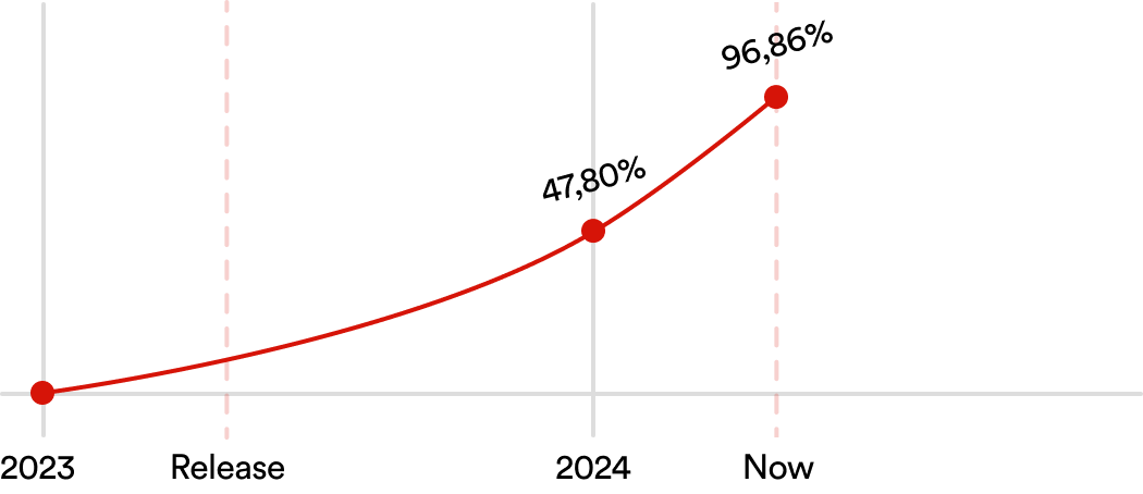 A year after shipping, the new Camera plugin version reached a 96.98% adoption rate across OutSystems mobile applications — measured directly from plugin telemetry.